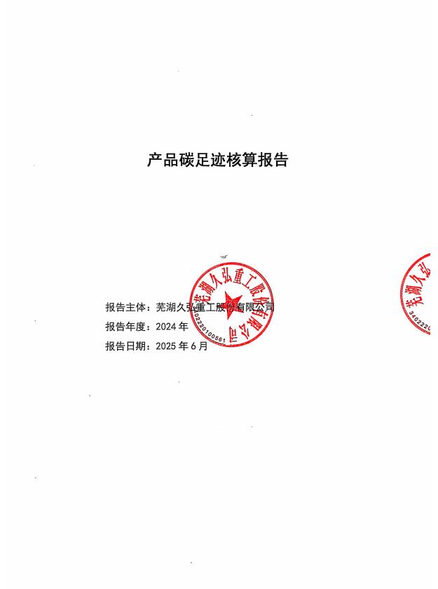 附件下載:蕪湖久弘重工股份有限公司2024年度產(chǎn)品碳足跡核算報(bào)告.pdf